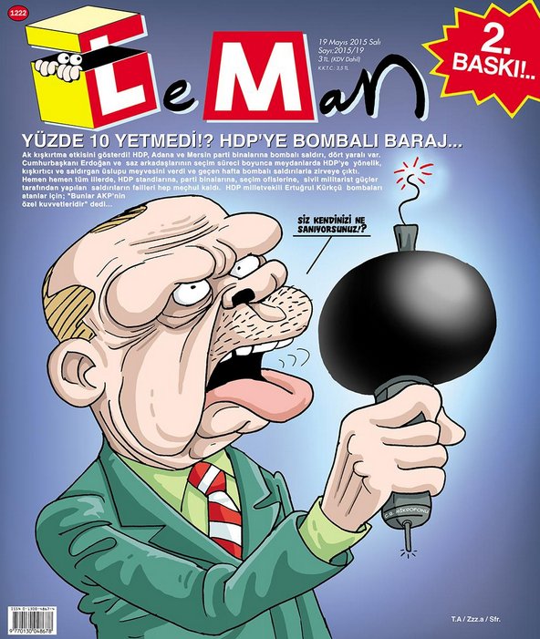 Küfür dergisi Leman, HDP binalarına yapılan saldırılarından Erdoğan'ı sorumlu tutmak için ikinci bir baskı yaptı.