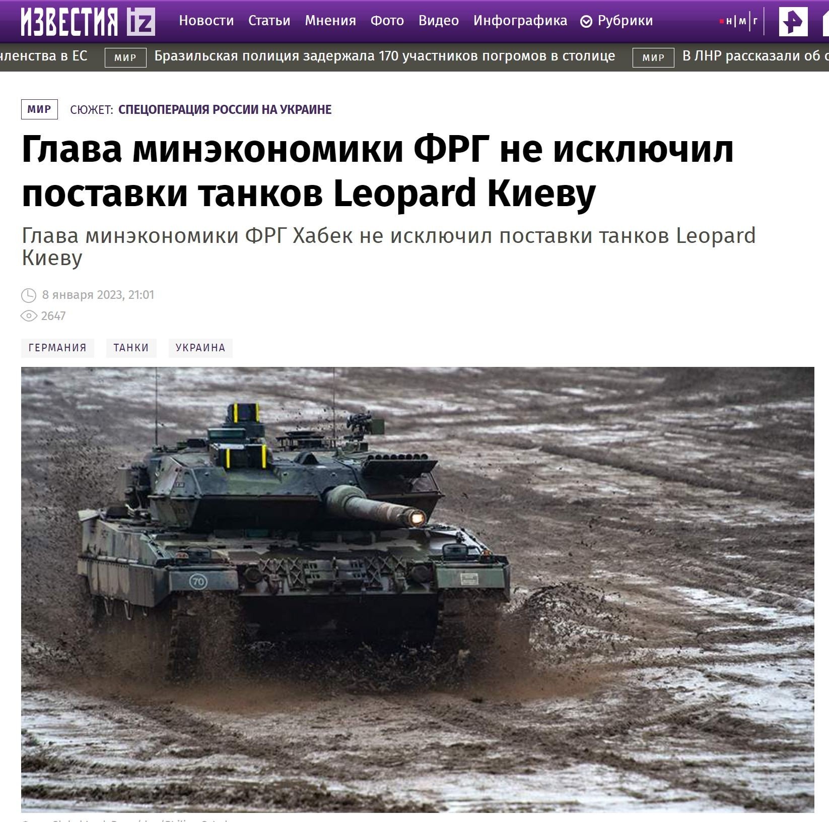 Almanya tarafından üretilen ağır muharebe tankı Leopard'ın Ukrayna'ya verilme ihtimali Rus basınında gündem oldu.