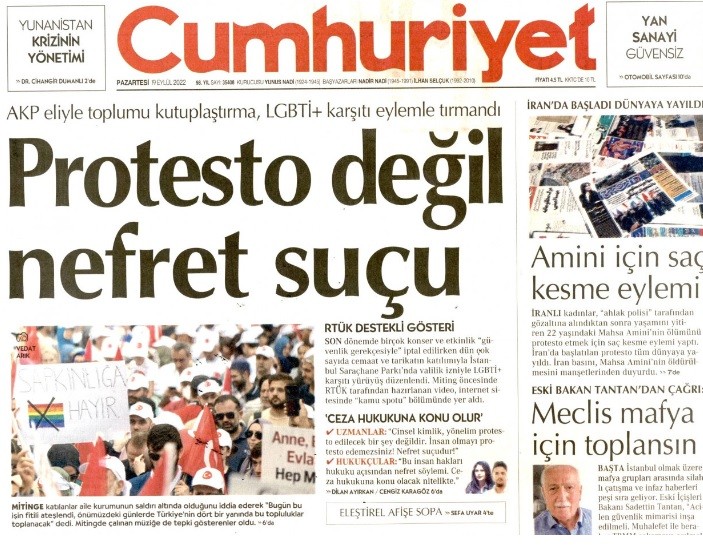 Cumhuriyet gazetesi haberin başlığında, "Protesto değil, nefret suçu." ifadelerini kullandı. Haberin detaylarında eyleme katılanlar çirkin ifadelerle hedef alınırken, ayrımcı olmakla suçlandı.