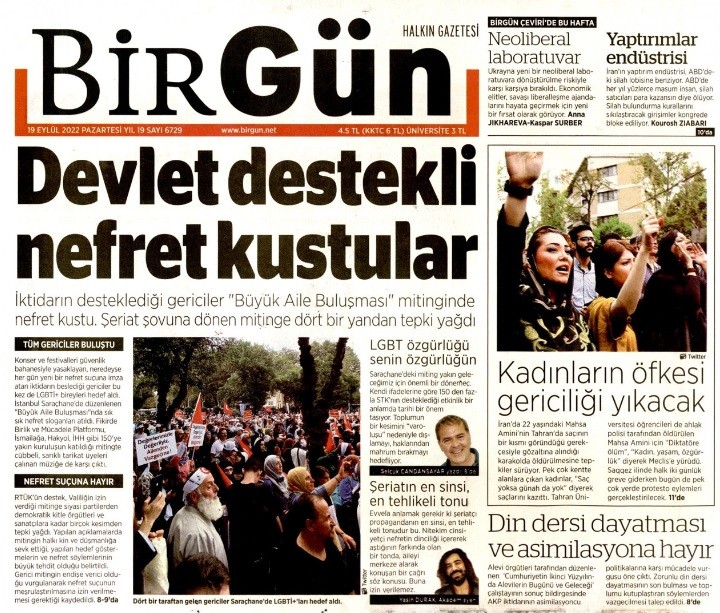 Birgün ise eşcinsel sapkınları savunduğu haberinde, "Devlet destekli nefret kustular." şeklinde başlık attı.