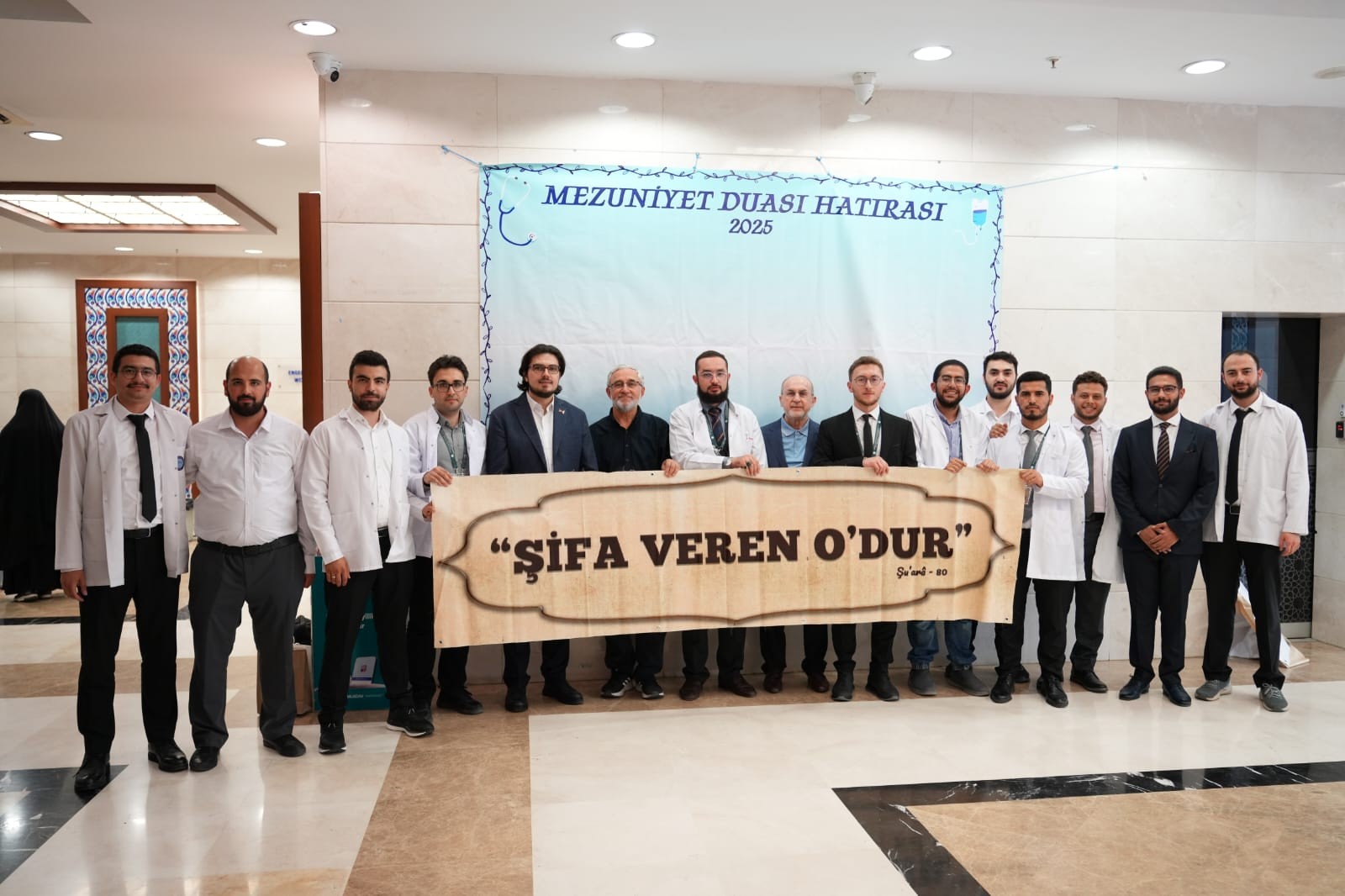 Tıp fakültesinden mezun olan öğrenciler ile akademisyenlerin katıldığı nezih programa, “Şifa veren O’dur” şeklinde ayet mealleri damga vururken, programda Din İşleri Yüksek Kurulu Başkan Vekili Aydın tarafından bir konuşma gerçekleştirildi.
