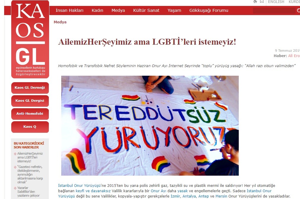 Lut Kavmi'nin azgın torunları, Kaos LG adlı internet siteleri üzerinden aylık rapor yayınladı. Açıklanan bilgilere göre azgınlara en çok destek veren yayın organı FETÖ'nün sesi T24 ile din düşmanı paçavra Cumhuriyet oldu. LGBTİ'li azgınların aktardığına göre sapkınların faaliyetine en çok itiraz eden haber kuruluşu ise yeniakit.com.tr'ydi.