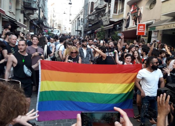 Müslüman Türk milletinin manevi değerlerini hiçe sayan ve Türkiye'de ahlaksızlığı sıradanlaştırmaya çalışan LGBT'li sapkınlar Taksim'de yeniden ortaya çıktı. Ahlaksız topluluk LGBT topluluğu Onur Yürüyüşü adı altında rezilliklerini bir kez daha gösterdi. Rezil güruh yürüyüş boyunca homofobi ve transfobiye karşı sloganlar attı.