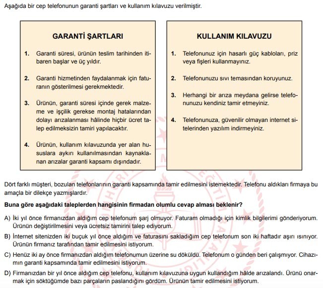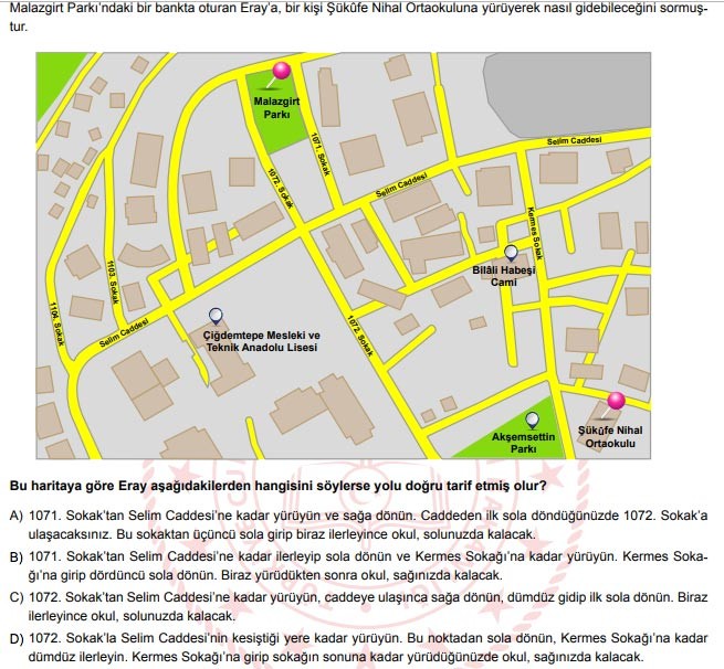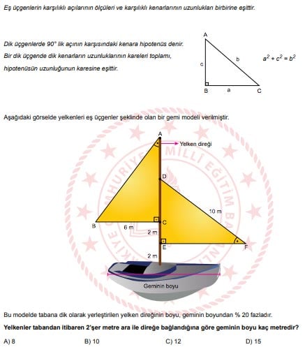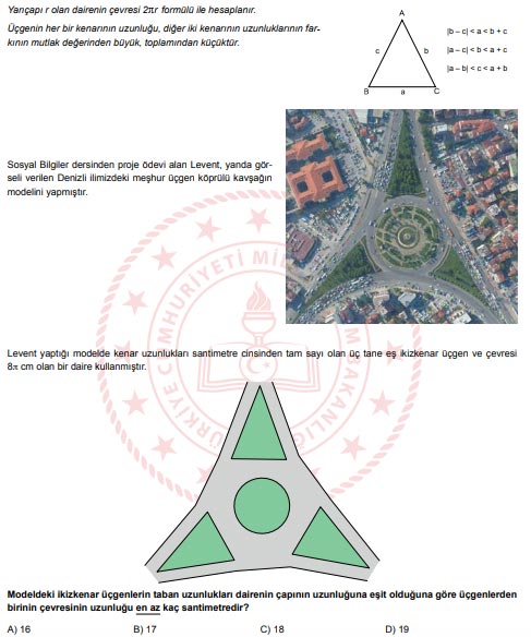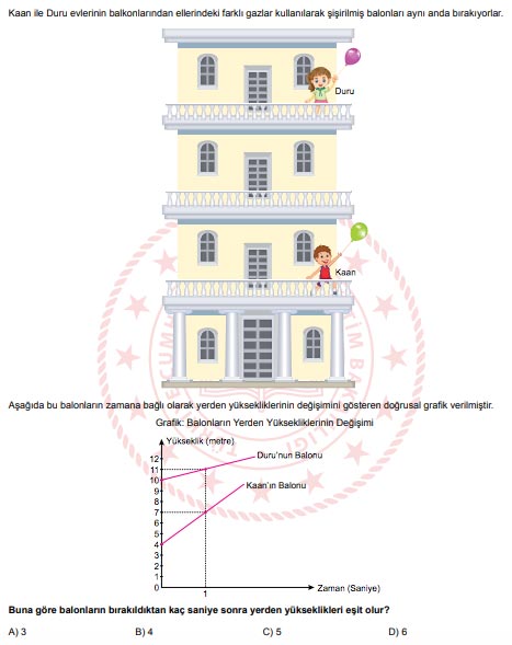Milli Eğitim Bakanlığı (MEB), Ölçme, Değerlendirme ve Sınav Hizmetleri Genel Müdürlüğünce 1 Haziran'da yapılacak merkezi sınava yönelik yedinci örnek soru kitapçığında, sayısal testte 20, sözel testte 25 olmak üzere toplam 45 soruya yer verildi.