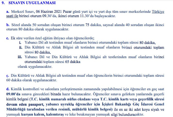 Öğrencinin sınav giriş yeri, salonu, sıra numarası, alacağı sınav tedbir hizmeti gibi bilgiler 27 Mayıs 2021 tarihinde e-Okul Veli Bilgilendirme Sisteminden ilan edilecektir.