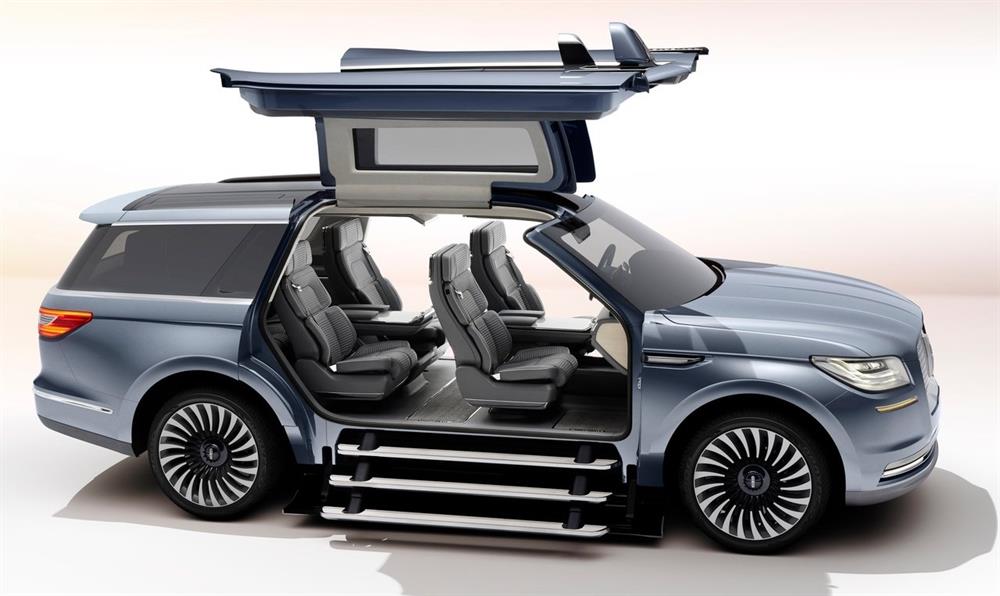 Evet, şimdi gelelim en can alıcı kısma… Yan taraftan baktığımızda kapı kolları göremiyoruz. Bunun nedeni ise Lincoln Navigator'un, tıpkı Tesla Model X gibi şahin kanat kapı yapısına sahip oluşu. Hatta Lincoln, Tesla'nın da önüne geçmiş. Şöyle ki; kanat kapılar açıldığında aracın içini olduğu gibi görebiliyorsunuz. Yani kapılar tek kapı olarak dizayn edilmiş. Böylece aracın orta kısmında kapı çıtaları da olmadığı için tam anlamıyla bir bütünlük sağlanmış.