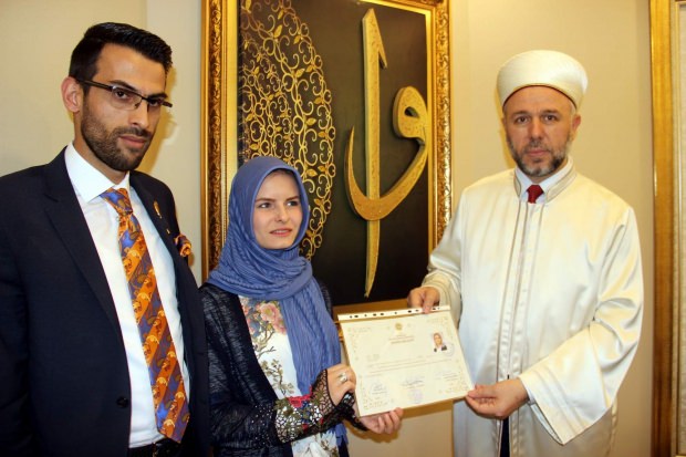 Kayseri'de Litvanya uyruklu Jurgita Kerbelyte, düzenlenen ihtida töreniyle Müslüman olarak ‘Sevda’ adını aldı.