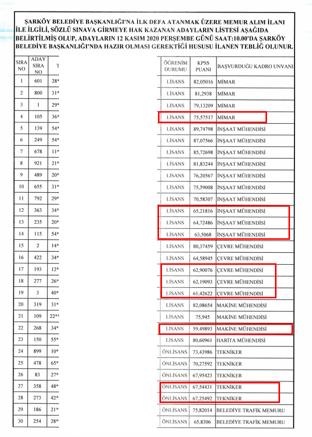 Yönetime en büyük alternatif olan muhalefet partisinin bir ilçe belediyesi olan Tekirdağ Şarköy Belediyesi ise Eylül ayında 14 memur almak için ilana çıktı. En yüksek beş katı KPSS puanına sahip adaylar sözlü sınava alınacak. Ancak belediye yönetimi 90 KPSS puanına sahip adaylar varken sözlü sınava 63 puanla inşaat mühendisi, 61 puanla çevre mühendisi, 59 puanla makine mühendisi, 55 puanla memur çağırdı.