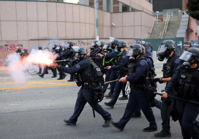 LAPD, protestolara katılan bazı kişilerin taş ve şişe attığını, bu nedenle müdahale edildiğini bildirdi. Belediye Başkanı Bass ise, "İnsanların otoyolda olması barışçıl değil. Şiddet barışçıl değil" ifadeleriyle durumu değerlendirdi.
