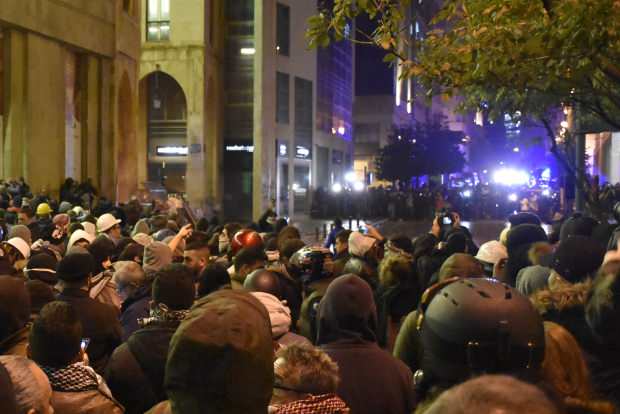 Hükümetin bir an önce kurulması ve ülkede her geçen gün daha da kötüye giden ekonominin düzeltilmesi talebiyle 17 Ekim'den beri devam eden gösterilerde dün güvenlik güçleri, Meclis binası önünde toplanan göstericileri göz yaşartıcı gaz kullanarak dağıtmaya çalıştı. Göstericiler taş ve havai fişek atarak güvenlik güçlerine karşılık verdi.