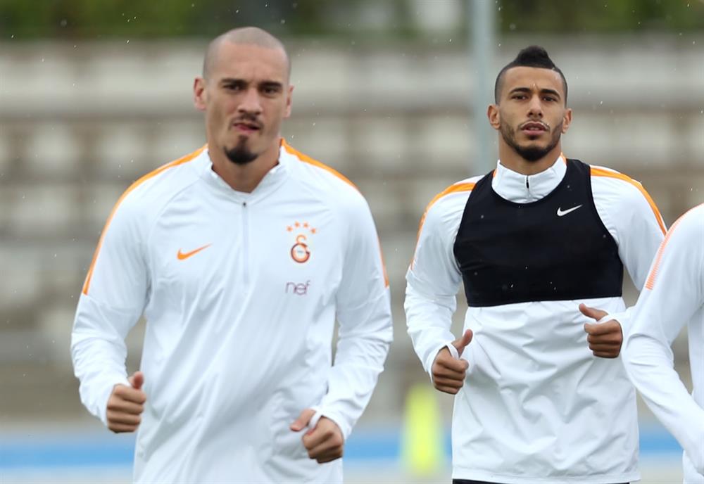Galatasaray'ın Brezilya'dan transferi Maicon, bir diğer yeni transfer Belhanda ile antrenmanda.