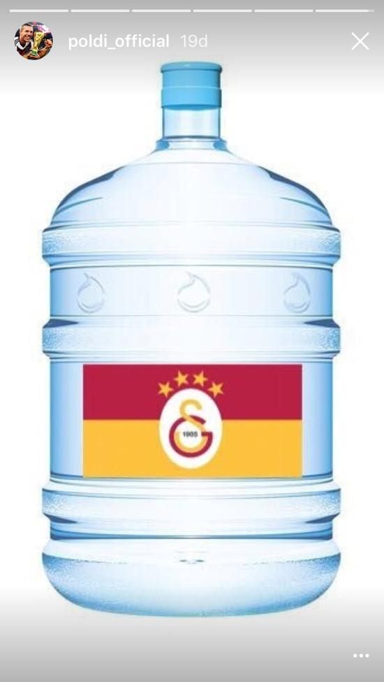 Instagram hesabının hikaye bölümünden Galatasaray logosunun bulunduğu su damacanası paylaşan Podolski, "Şişe su az gelir, buradan iç" der gibiydi...
