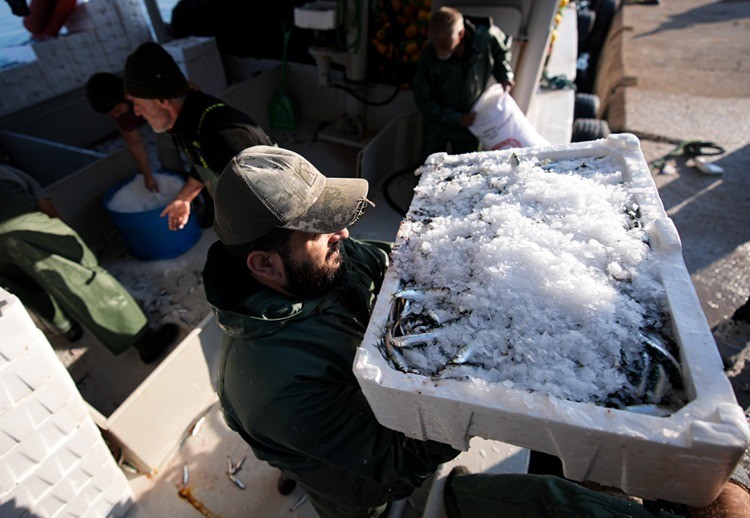 Balıkçı tayfası, eylül ayından nisan ayına kadar süren av sezonunda, hava koşulları elverdiği sürece denizde mesai yapıyor.
