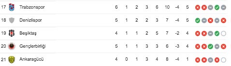 Süper Lig puan durumu