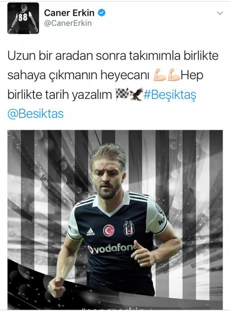 Sakatlığı nedeniyle uzun süredir takımdan ayrı kalan Caner Erkin dev karşılaşmaya saatler kala yaptığı paylaşım ile herkesi heyecanlandırdı. Hocası Şenol Güneş'in Lyon karşısında kendisine şans verdiğini açıklayan yıldız oyuncu twitter hesabından "Uzun bir aradan sonra takımımla birlikte sahaya çıkmanın heyecanı. Hep birlikte tarih yazalım" paylaşımını yaptı.