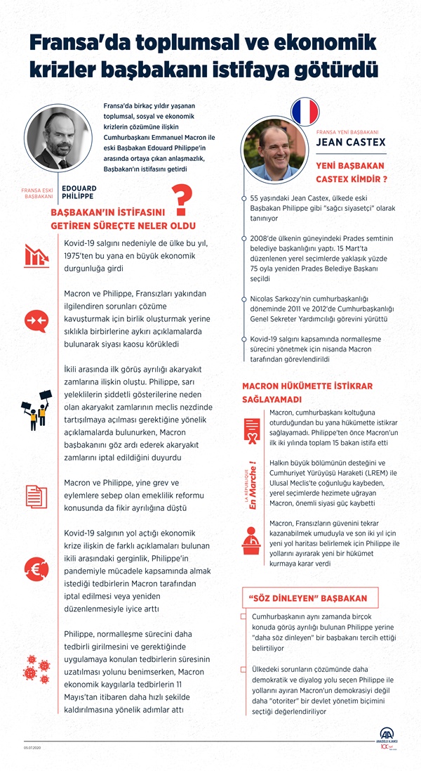 Philippe'in ülkede yaşanan önemli krizlerin çözümüne ilişkin Macron ile derin görüş ayrılıklarına sahip olması da görevinden ayrılması etkili oldu. Sarı yeleklilerin eylemleri ile emeklilik reformuna karşı yapılan grev ve gösteriler nedeniyle ülke kaosa sürüklenmişti.