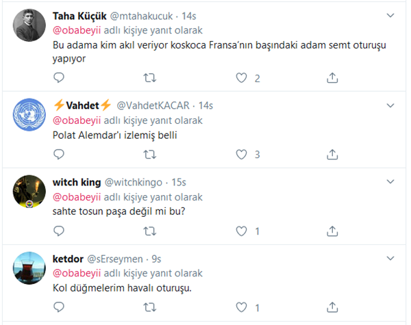 Fikirleriyle üstünlük sağlayamayıp, vücut diliyle manipülasyon yapmaya çalışan Macron’un ‘kabadayı’ oturuşuyla ilgili bir çok espri yapıldı. İşte bazıları: