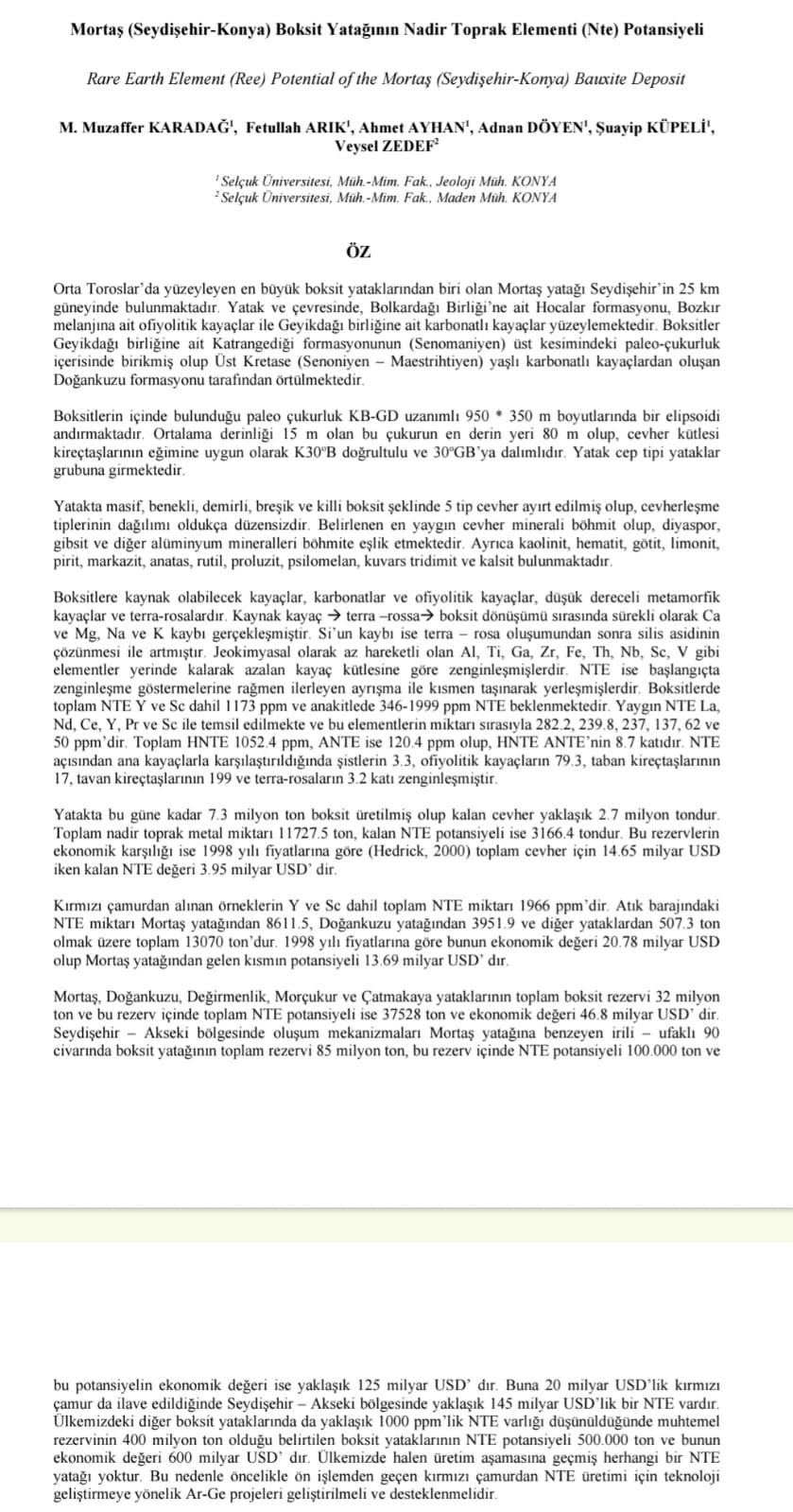Yani "boksit" denerek değersizleştirilip tonu 40 dolar gibi gülünç rakamlara Çin'e gönderilen milyonlarca ton cevher, aslında trilyonlarca dolar NTE içeriyor olabilir!.