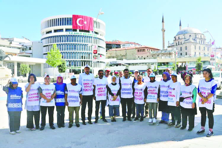 Karataş, Bolu’daki direnişin 70’inci gününde olduklarını belirterek, “70 gündür Bolu’daki eylem çadırımızda eylemimiz devam ediyor. 11 Haziran 2019 tarihinde 12 gün süren bir yürüyüş başlattık ve CHP Genel Merkezi önünde tamamladık. Hizmet-İş bir işçi örgütüdür. Hiçbir siyasal parti ile herhangi bir hesabımız olamaz. Biz emeğimiz, ekmeğimiz, geleceğimiz için varız. Sendikamızın varlık nedeni budur” değerlendirmesinde bulundu.