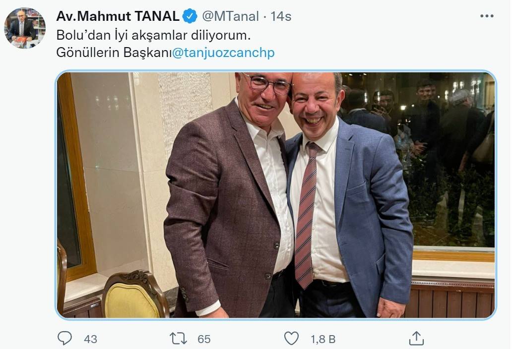 AK Parti'yi ve Başkan Recep Tayyip Erdoğan'ı karalamak isterken her fırsatta rezil kepaze olan CHP İstanbul Milletvekili Mahmut Tanal, mülteci düşmanlığıyla tanınan CHP'li Bolu Belediye Başkanı Tanju Özcan'ı ziyaret etti.
