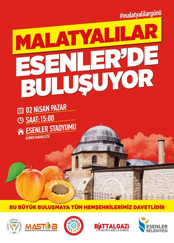 Esenler Belediyesi'nin Battalgazi Malatya Gençlik Derneği, Malatya Sivil Toplum Örgütleri Birliği (MASTÖB) ve Malatya Dernekler Federasyonu (MADEF) ile birlikte düzenleyeceği Malatyalılar Günü, açılışı Cumhurbaşkanımız Sayın Recep Tayyip Erdoğan tarafından yapılan Esenler Stadyumu'nda yapılacak.