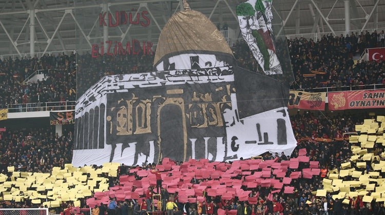 Yeni Malatyaspor taraftarı, Galatasaray maçı öncesi "Kudüs bizimdir" sloganıyla Mescid-i Aksa'nın resminin bulunduğu koreografi yaptı.