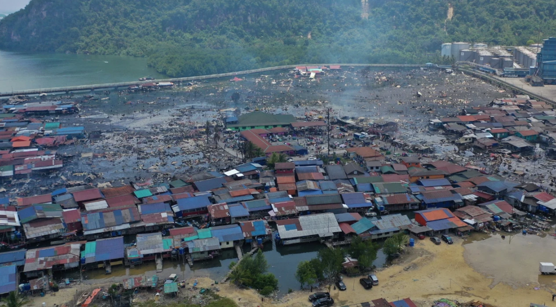Malezya’nın Sabah eyaletinde bulunan ve "su köyü" olarak adlandırılan kıyı yerleşiminde çıkan dev yangın, bölgeyi adeta haritadan sildi. Pazar sabahı erken saatlerde başlayan alevler, yaklaşık 1000 evi küle çevirirken 9 binden fazla kişiyi evsiz bıraktı.