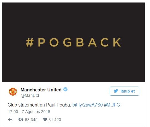 Duyurunun yapıldığı haberin görseli olarak ise #PogbaBack (Pogba geri döndü) etiketinin kullanılması dikkat çekti.