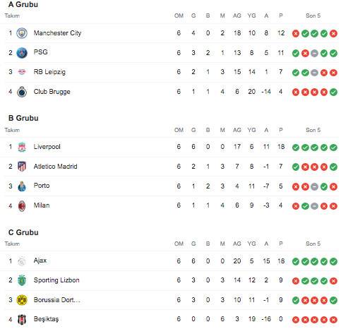 Manchester United Şampiyonlar Ligi'nde son 16 turuna yükselen takımlar arasında yerini aldı. Manchester City, Paris Saint Germain, Liverpool, Atletico Madrid, Ajax, Sporting Lizbon, Real Madrid, Inter, Bayern Münih, Benfica. UEFA Şampiyonlar Ligi'nde F Grubu'ndan son 16 turuna yükselecek diğer takım Villarreal ya da Atalanta olacak. İtalya'daki maç kar yağışı nedeniyle bugün oynanacak. Villarreal, deplasmanda rakibine mağlup olmaması halinde son 16 turuna yükselecek. Öte yandan Atalanta galip gelmesi halinde rakibini saf dışı bırakıp son 16 takım arasında adını yazdıracak. UEFA Şampiyonlar Ligi G Grubu'nda 11 puan toplayan Lille, grup lideri olarak son 16 takım arasına yükseldi. UEFA Şampiyonlar Ligi G Grubu'nu 10 puanla tamamlayan Salzburg, grup ikincisi oldu. Avusturya temsilcisi son 16 takım arasına adını yazdırmayı başardı. UEFA Şampiyonlar Ligi H Grubu'nda yer alan Juventus grubunda oynadığı maçlarda 5 galibiyet ve 1 mağlubiyet elde etti. 15 puan toplama başarısı gösteren İtalyan ekibi grubunu lider sırada tamamladı. UEFA Şampiyonlar Ligi H Grubu'nda yer alan Chelsea, grupta oynadığı karşılaşmalarda 4 galibiyet ile 1'er beraberlik ve mağlubiyet elde etti. İngiliz ekibi 13 puan toplama başarısı göstererek grubunda ikinci sırada yer aldı ve son 16 takım içerisine adını yazdırdı.
