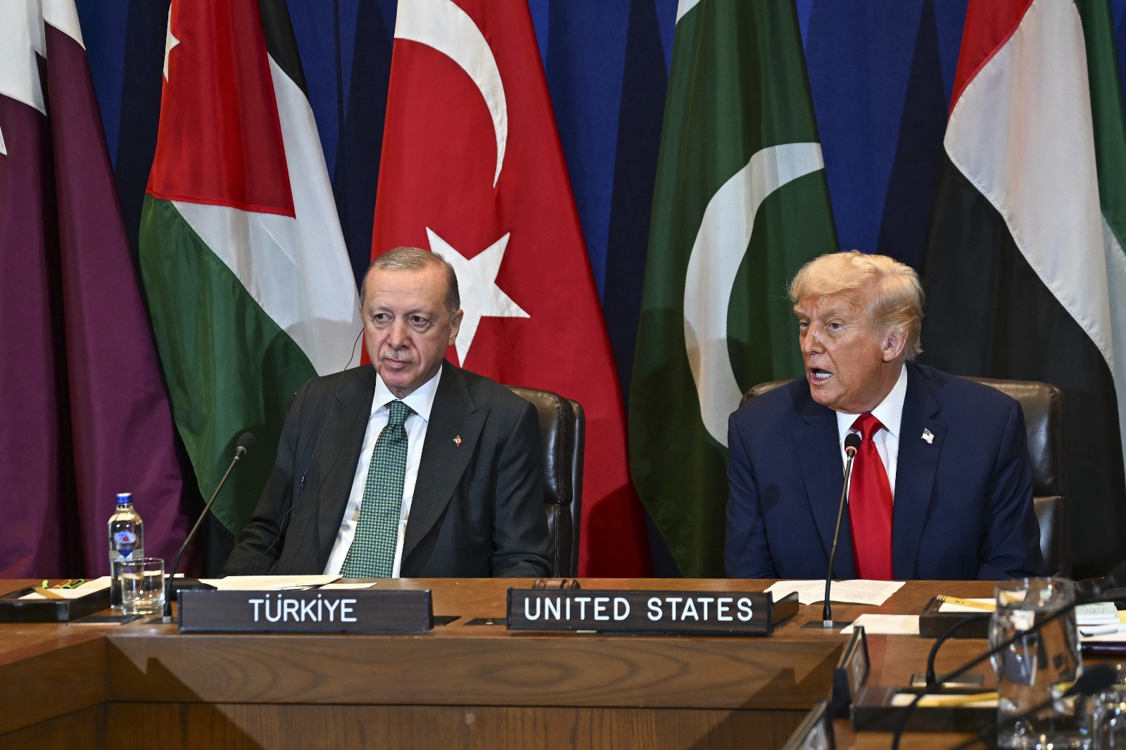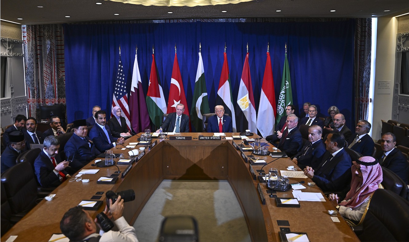 Daha önceki görüşmede Avrupalı liderleri karşısında dizen ABD Başkanı Donald Trump, Müslüman liderlerle yaptığı Gazze Zirvesi'nde Cumhurbaşkanı Recep Tayyip Erdoğan'la yan yana masanın başında oturdu.