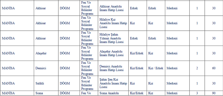 Manisa liseleri taban puanı 2021, Manisa liseleri başarı sıralaması ve liseleri kontenjanları nelerdir?