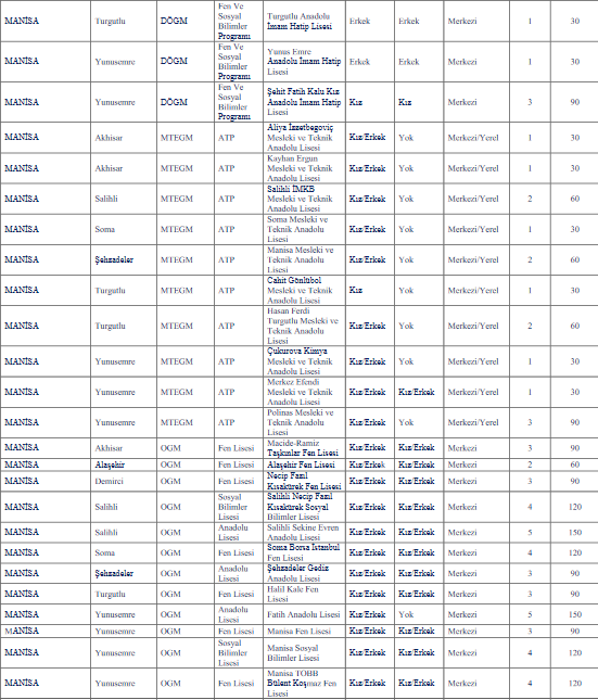 Manisa liselerinin kontenjan kapasitesi ne kadar?