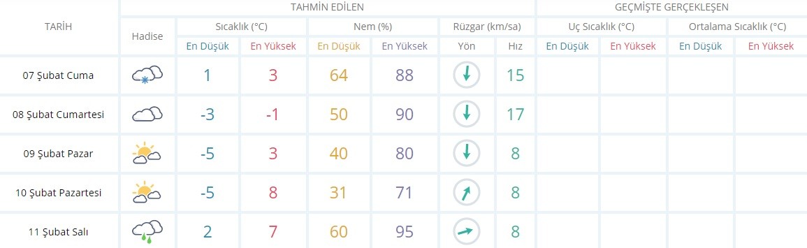 Manisa Demirci’de 7 Şubat Cuma günü kar yağışı bekleniyor. İşte, 5 günlük hava tahmin raporu: