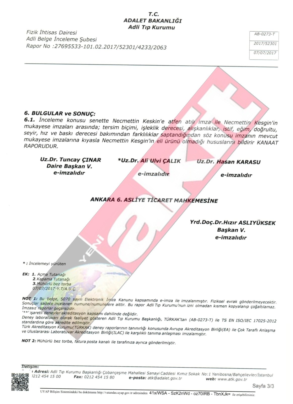 Ancak yapılan inceleme ve adli tıp kayıtlarına göre Mansur Yavaş'ın 'önümde imzalandı' dediği senetteki imzalar sahte çıktı.