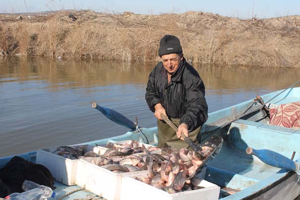 Balıkçı Mehmet Çapraz, "35 yıldan beri balıkçıyım. Manyas Gölü'nde çalışıyorum. Önceden sazan tutuyorduk, şimdi İsrail sazanı tutuyoruz. İşlerimiz iyi. Allah bereket versin. Balıklar biraz ufak ama çok bol" dedi.