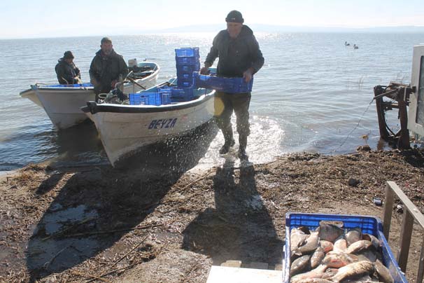 Yaklaşık 300 balıkçının avlandığı Manyas Gölü'nde İsrail sazanı bolluğu görülüyor.