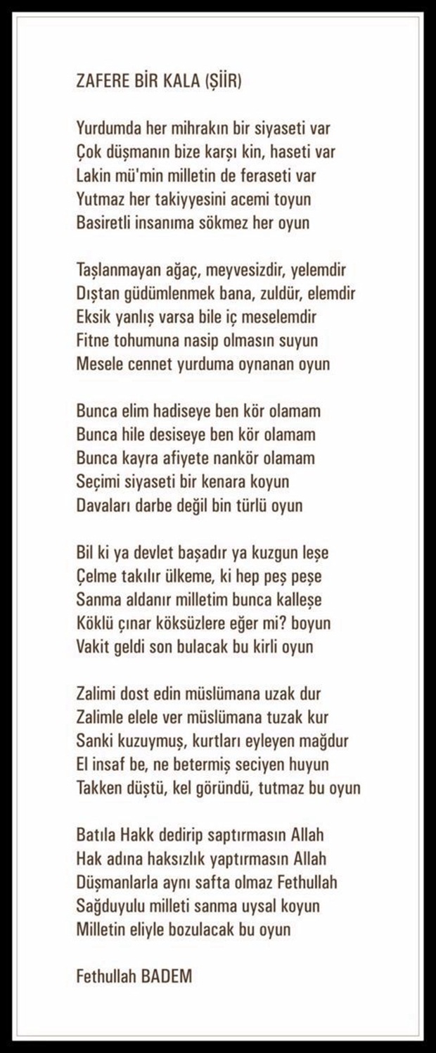 Kahramanmaraşlı sanatçı Fethullah Badem Fetullahçı Terör Örgütü'nün (FETÖ) yaptığı darbe girişimine dair bir şiir yazdı. İşte o dizeler...