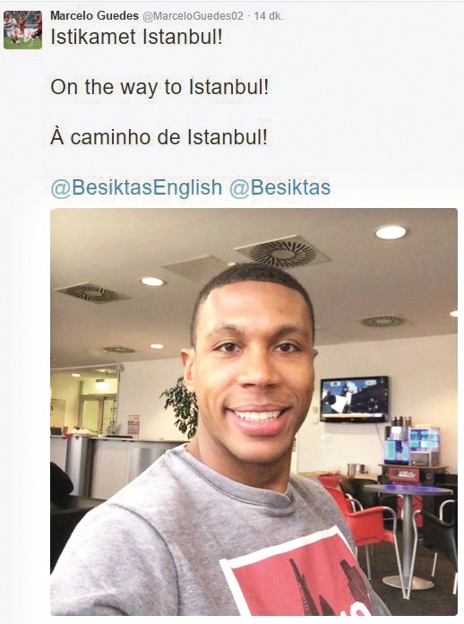 Beşiktaş'ın yeni transferi Marcelo Guedes, İstanbul yolculuğu öncesi sosyal medyada bir fotoğraf paylaştı ve altına 3 dilde (Türkçe, İngilizce, Portekizce) 'İstikamet İstanbul' diye yazdı.