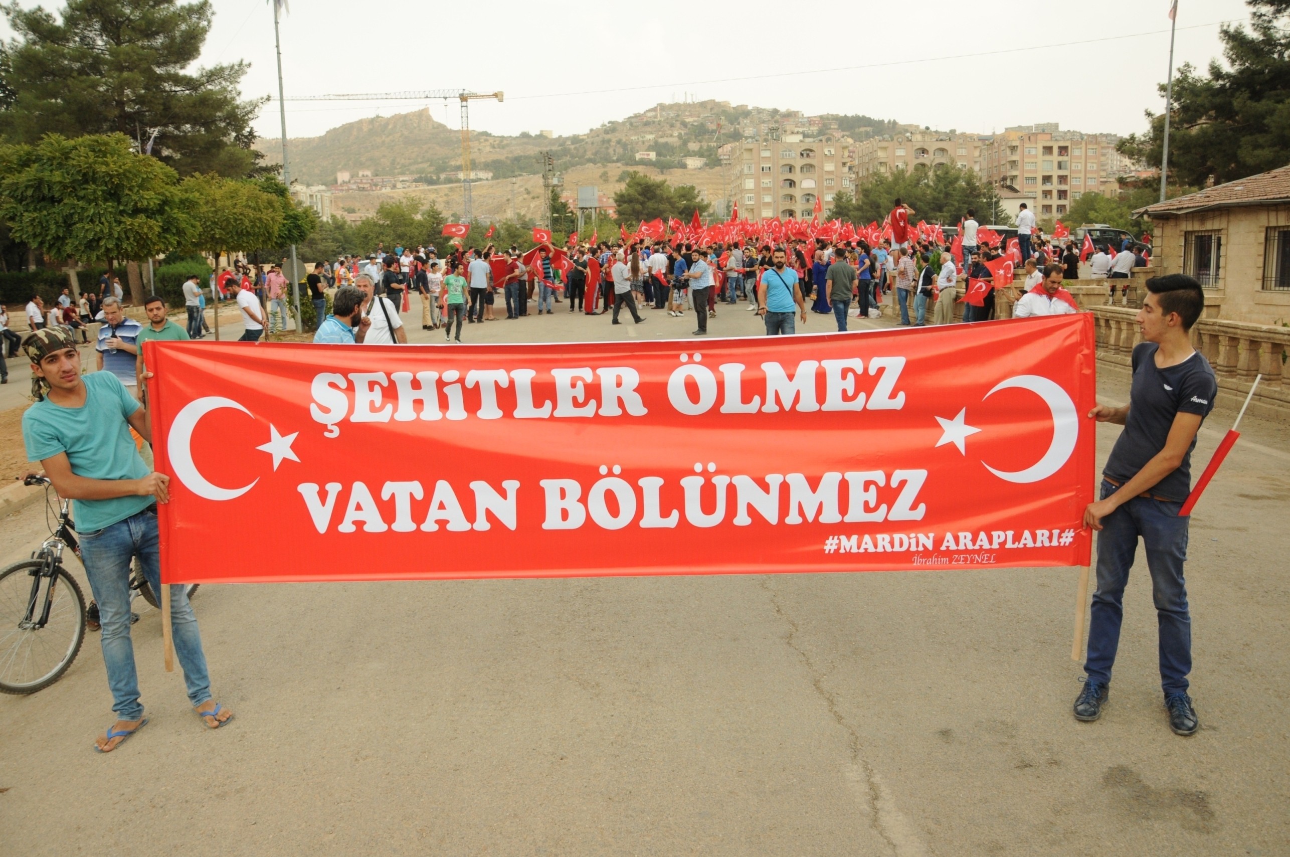 Mardin'de binlerce kişi sloganlar atarak teröre lanet yürüyüşü yaptı.