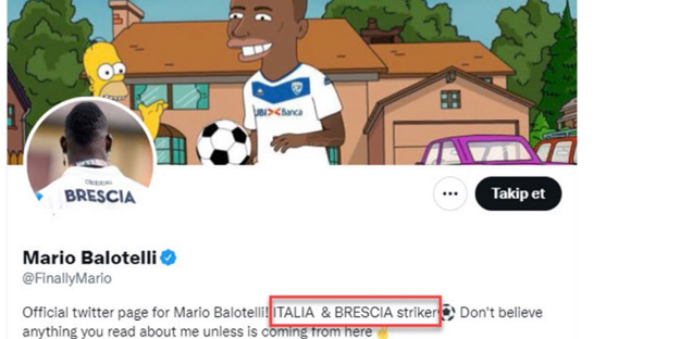 Balotelli, bio'sunu 'İtalya ve Brescia forveti' olarak değiştirdi.