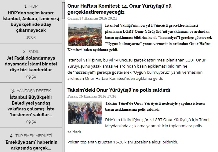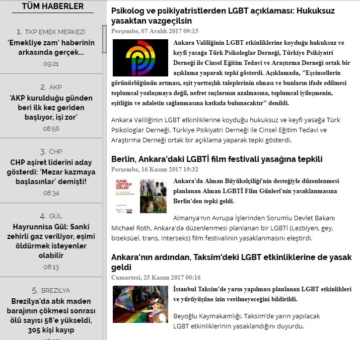 İşte bazı sol görüşlü sitelerde yer alan sapkınlığı savunan haberler;