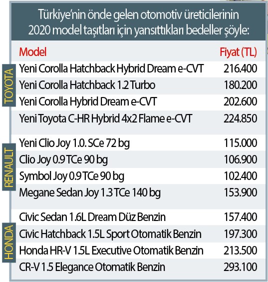 Corona virüsünün (Covid-19) yayılımını durdurmak için üretime ara veren otomotiv firmalarının faaliyetlerine yeniden başlama kararı almaları geniş yankı uyandırıyor. Hyundai Assan, Honda Türkiye ve Oyak Renault’un nisan ayında, Toyota Türkiye’nin ise yakında çarkları döndürme planı galericileri memnun ederken; tüketicileri kaygılandırıyor. Zira dolar ve euro kurunda görülen artışın binek taşıt fiyatlarını yukarı taşıyacağı tahmin ediliyor.