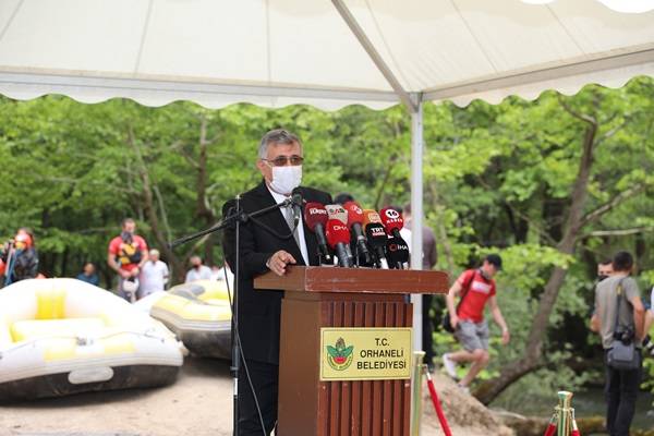 Orhaneli Belediye Başkanı Ali Aykurt da 7’den 70’e bölge halkının yaşam kalitesini yükseltmek amacıyla yaptıkları projeleri anlattı. Doğa sporlarından, termal zenginlikler ve yöresel ürünlere kadar her alanda eko-turizm adına önemli projeleri hayata geçirdiklerini dile getiren Aykurt, 2 yıldır üzerinde çalıştıkları rafting parkurunu ülke sporuna kazandırmanın gururu yaşadıklarını söyledi. Rafting Federasyonu’ndan Büyükşehir Belediyesi’ne kadar projeye katkı sunan herkese teşekkür eden Aykurt, “Bu projeye 2 yıl önce göreve gelir gelmez başladık. Bu yoldan gelirken araçlarımız yarıya kadar çamura giriyordu. Bugün ise Büyükşehir Belediye Başkanımızın destekleriyle sadece bu yola 780 kamyon malzeme çekerek bu hale getirdik. Biz burayı Bursa’mıza ve tüm Marmara Bölgesi'ne bir hizmet olarak sunmak amacıyla yola çıktık. Orhaneli'nin tanıtımı anlamında gerçekten çok büyük katkı sağlayacağına inanmaktayız. Bizler kendimize insana ve insanlığa hizmeti hedef olarak koyduk. Rafting parkurumuzun bölge ekonomisine önemli bir katkı sağlayacağına inanıyorum. Parkurumuz ilçemize ve tüm sporseverlere hayırlı olsun” dedi.
