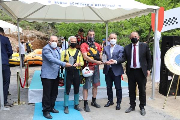 Daha sonra rafting parkuruna geçen protokol üyelerinden Bursa Milletvekilleri Osman Mesten ve Atilla Ödünç ile Orhaneli Belediye Başkanı Ali Aykurt ve AK Parti İl Başkanı Davut Gürkan, bota binerek parkuru test etti.