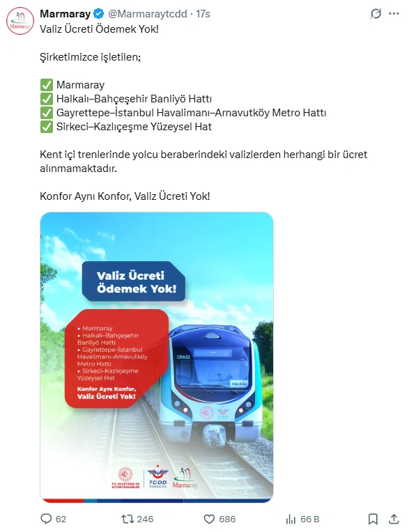 Marmaray’dan Metro İstanbul’a anlamlı gönderme! Konfor aynı konfor, valiz ücreti yok