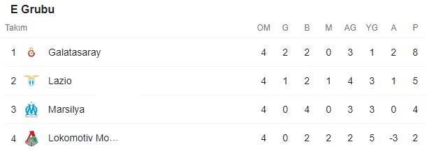 Avrupa Ligi E Grubu'nda lider ise temsilcimiz Galatasaray.