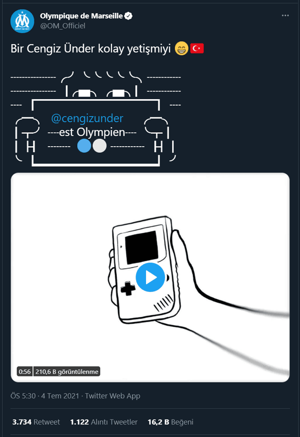 Milli oyuncu Cengiz Ünder ile anlaşmaya varan Marsilya, transferi Türkçe bir paylaşımda duyurdu.