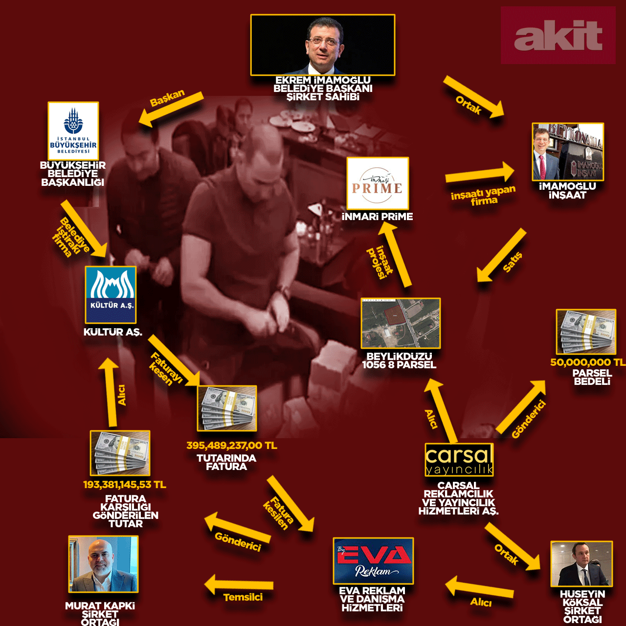 Yapılan incelemelerde, Murat Kapki'nin ortağı olduğu BVA Reklam ve Danışmanlık Hizmetleri A.Ş.'nin banka hesaplarından Hüseyin Köksal'ın hesaplarına 2024 yılında toplam 130 milyon TL transfer yapıldığı belirlendi. Bu tutarın 50 milyon TL'sinin, Ekrem İmamoğlu'nun yakın arkadaşı olan Hüseyin Köksal'ın ortağı olduğu CARSAL Reklamcılık ve Yayıncılık A.Ş. hesabına aktarıldığı tespit edildi.