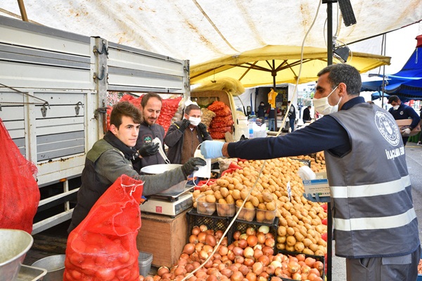 Sağlık İşleri Dairesi Başkanlığı ekiplerince gerçekleştirilen uygulama, Bursaray Şehreküstü İstasyonu’nda başladı. İstasyona gelen ve metrodan çıkan vatandaşlar, belediye ekipleri tarafından karşılandı. Kendilerine tutulan el dezenfektanını kullanarak, koruyucu maskelerini takan ve içerisinde temizlik maddeleri bulunan el kitlerini alan vatandaşlar, güvenle yollarına devam etti. Daha sonra Şehreküstü Meydanı’nda sürdürülen çalışma, ardından Millet Mahallesi’nde kurulan pazar yerinde devam etti.