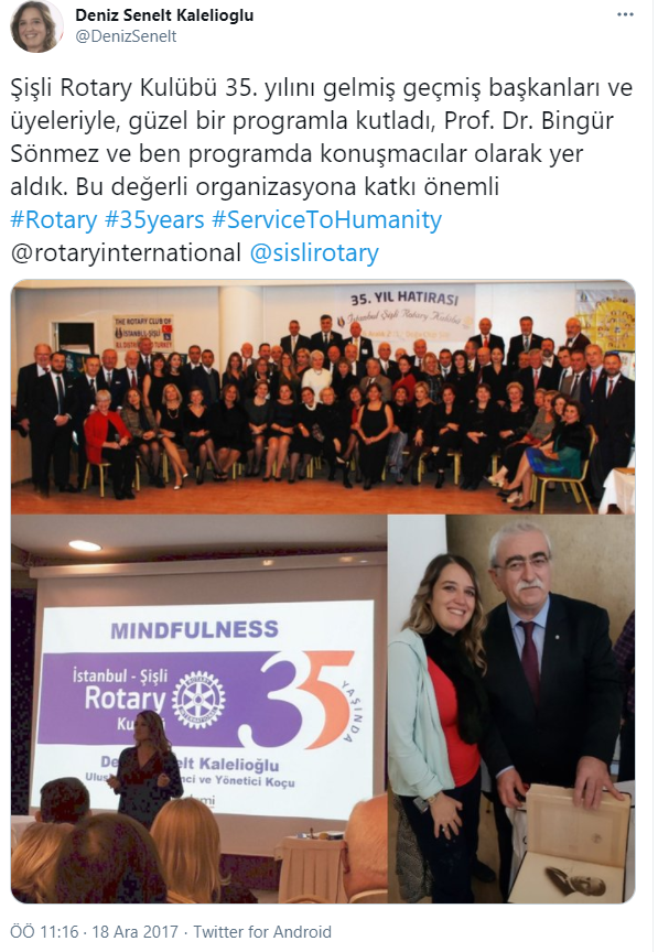 2017 yılında, Fenerbahçe Kongre Üyesi Deniz Senelt Kalelioğlu da attığı bir tweette sadece üyeler ve eski başkanlarının katıldığı Şişli Rotary Kulübü'nün 35. yıldönümü etkinliğinde Bingür Sönmez ile birlikte konuşma yaptıklarını açıkladığı tespit edildi.